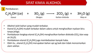 Reaksi kimia pun cenderung terjadi pada gugus fungsi. Baca versi flipbook dari Pengenalan Alkohol Penyediaan Etanol dan Sifat Fizik bagi Alkohololeh Cikgu Tuti Azuraidah. Etanol juga bisa digunakan untuk sebagai antiseptik yang bisa membunuh bakteri yang memberikan infeksi pada kulit.